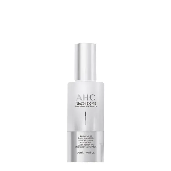 Tinh chất AHC Niacin Biome Mela Scissors Max Essence là một trong những “chìa khóa” giúp dưỡng sáng da hiệu quả. Ngoài sở hữu công thức làm sáng độc quyền AHC, tinh chất còn chứa bộ ba “arbutin, tranexamic acid & niacinamide” với khả năng ức chế hắc tố melanin tích tụ gây đồi mồi, đốm nâu từ sâu các tầng biểu bì, đồng thời loại bỏ melanin đang tích tụ, ngăn ngừa các tác động bên ngoài gây nám da, tàn nhang trên bề mặt da.